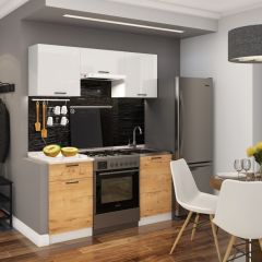 ДУСЯ-2 1.6м Кухонный гарнитур (Белый/Белый бриллиант/Дуб Бунратти/Антарес)
