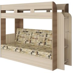 Кровать 2-х ярусная с диваном Карамель 75 (Газета) Ясень шимо светлый/темный